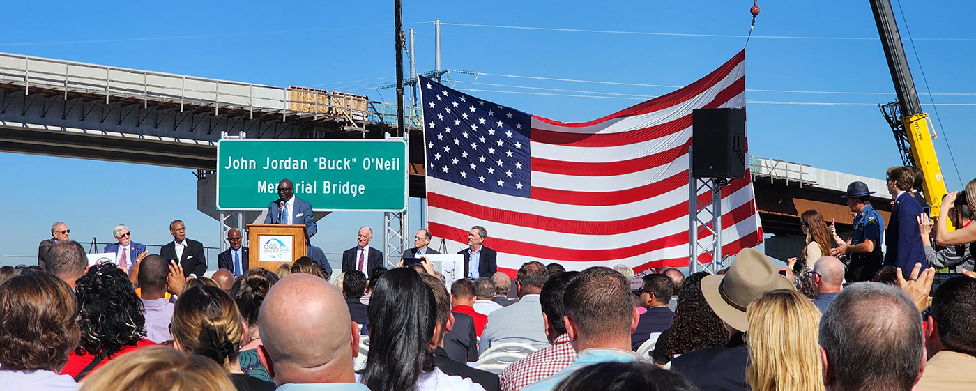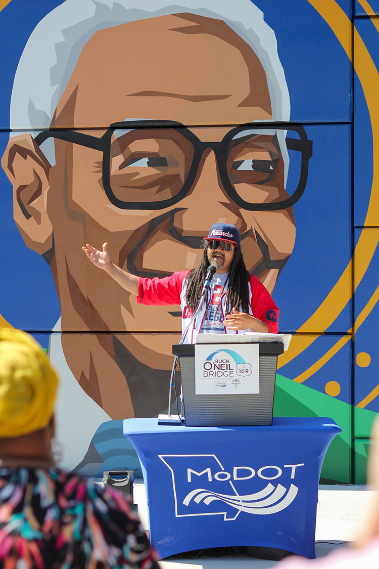 Negro Leagues Baseball Museum president Bob Kendrick speaking at the bridge dedication ceremony