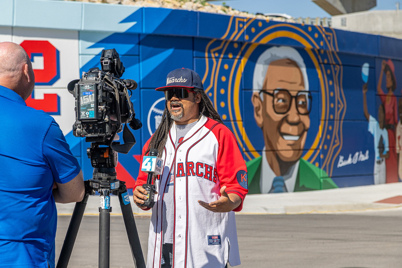 Painted in the spring of 2025 this mural honors Kansas City legend and founder of the Negro Leagues Baseball Museum, Buck O'Neil.