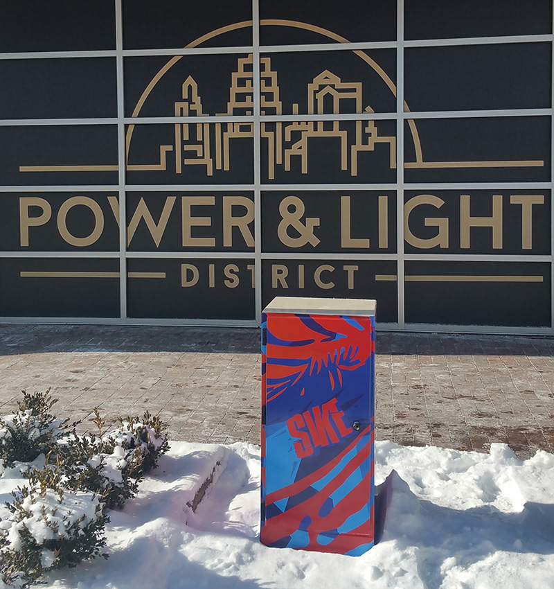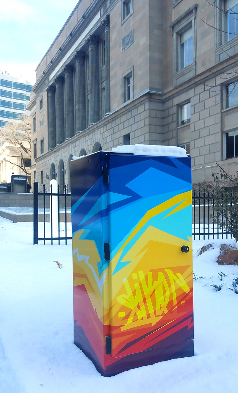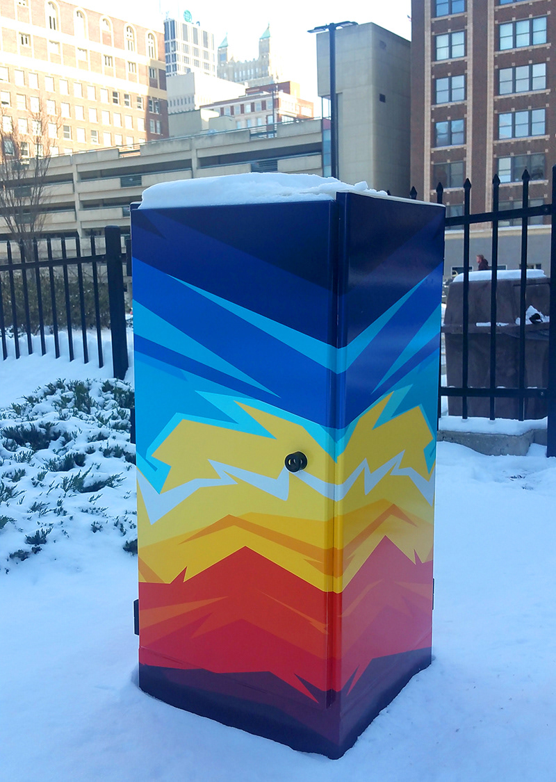 Googe Fiber service boxes wrapped in Sike Style graphics. January 2016.