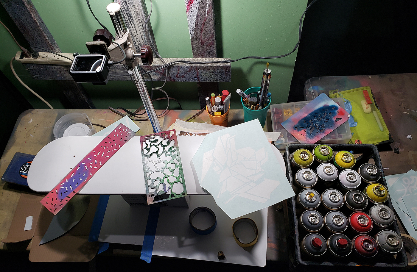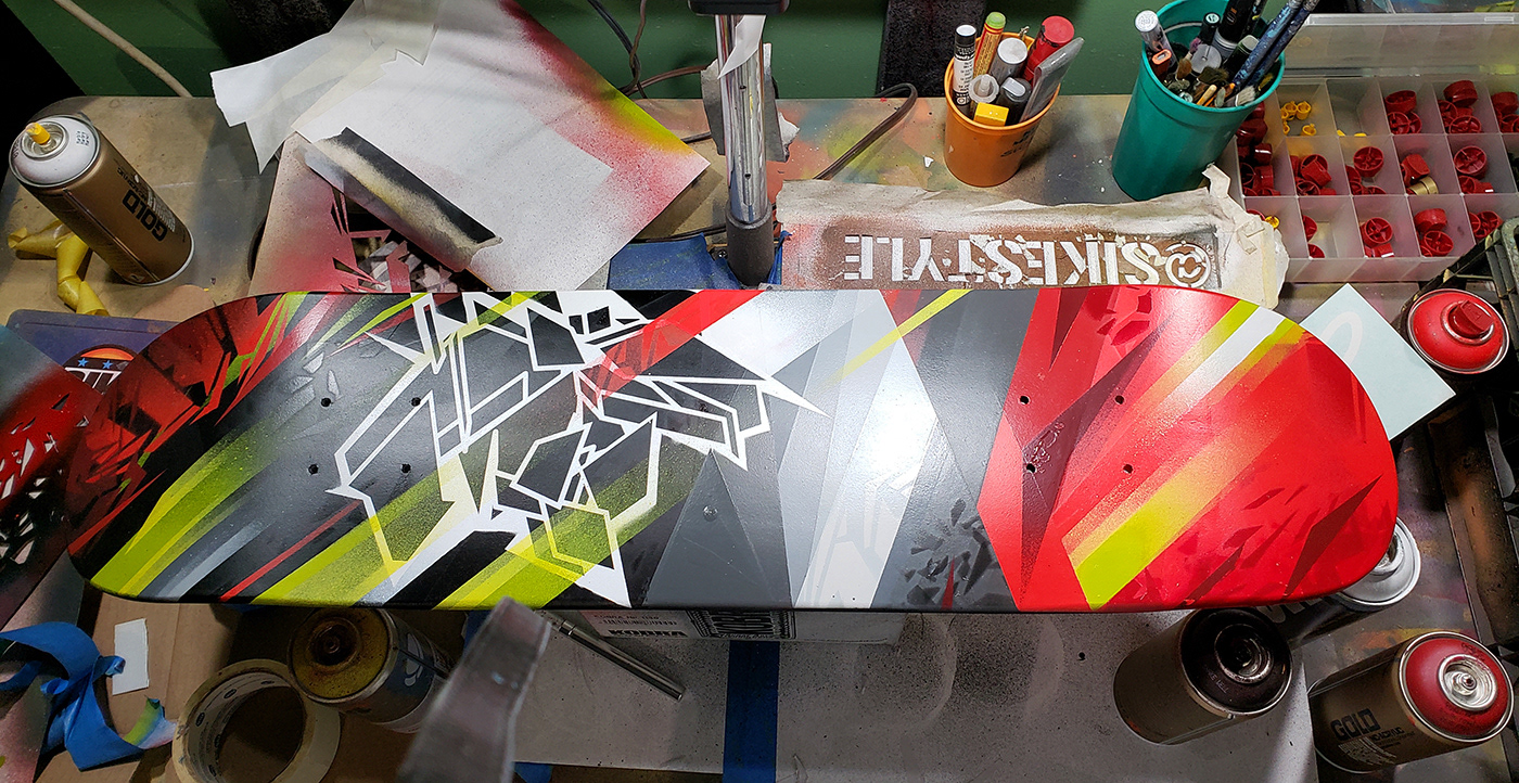 Custom painted skate deck donated to the Kansas City Artists Coalition 37th Annual Benefit Art Auction. February 2020