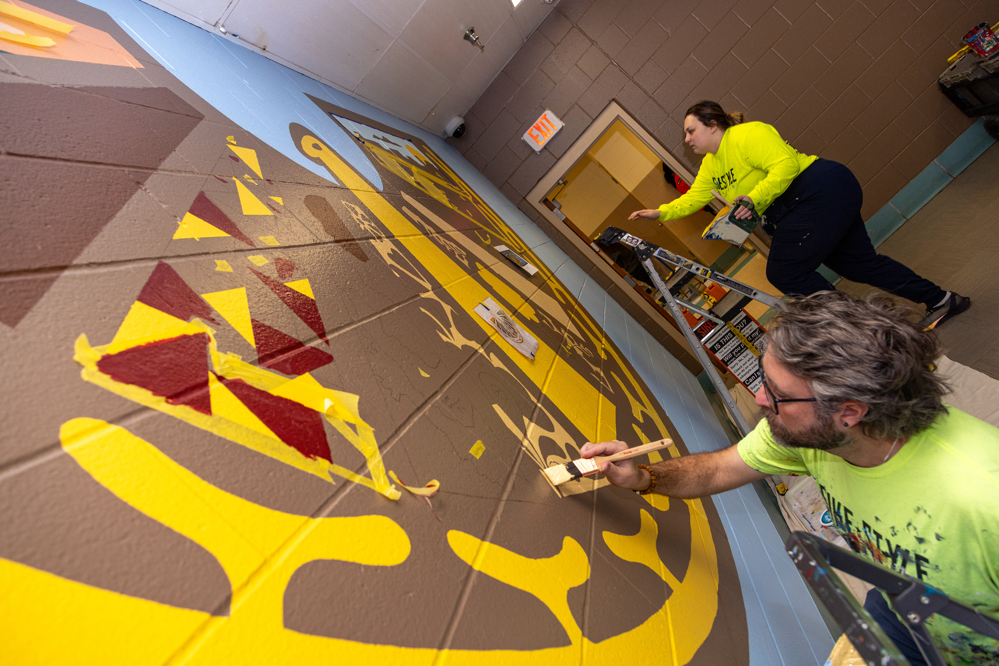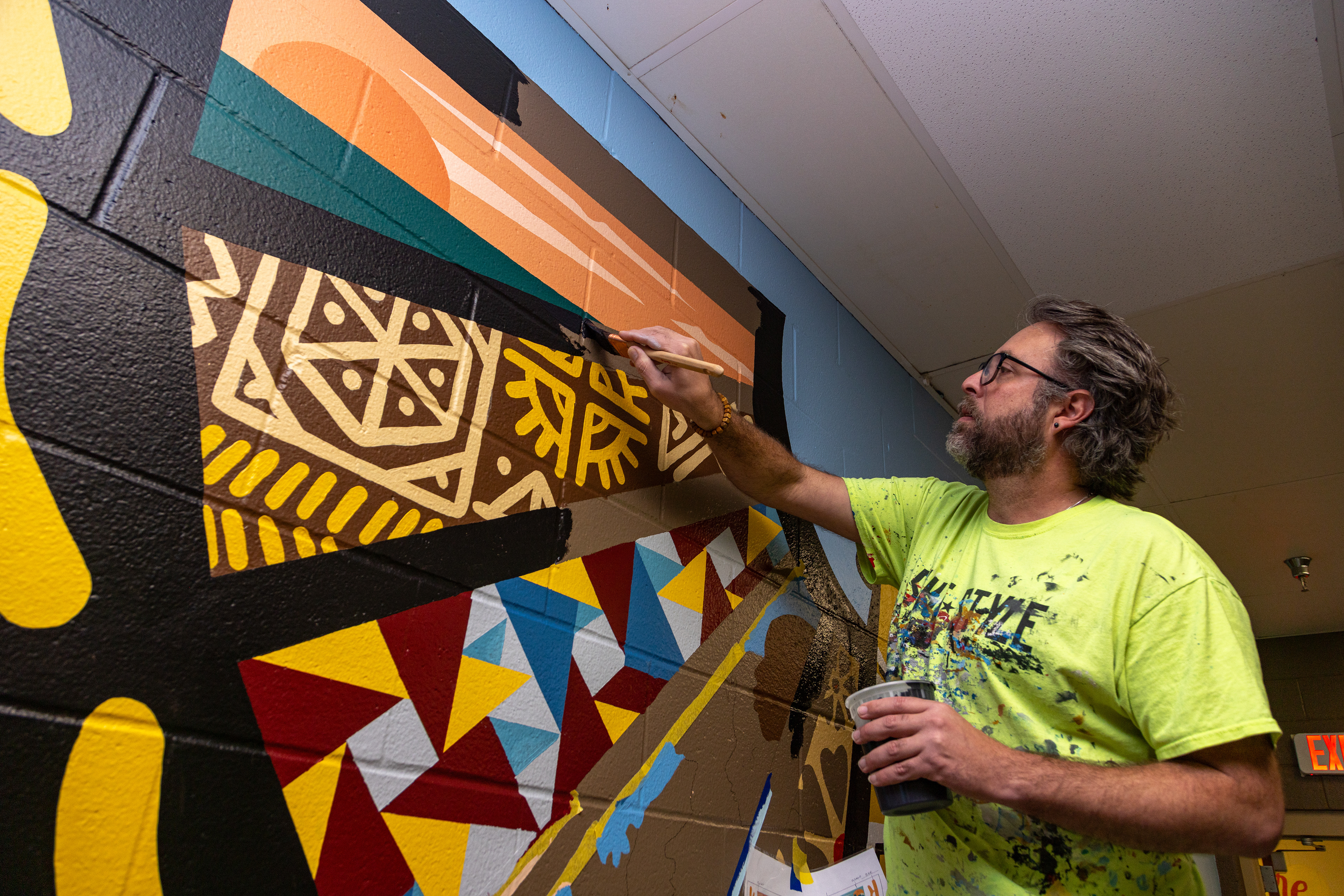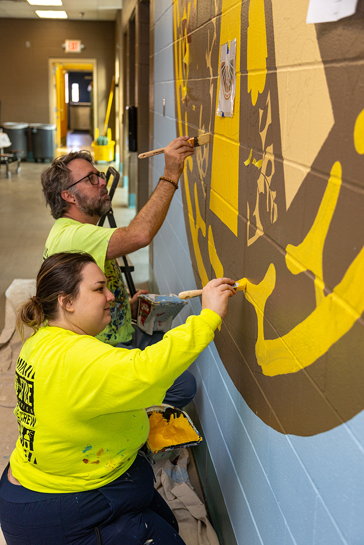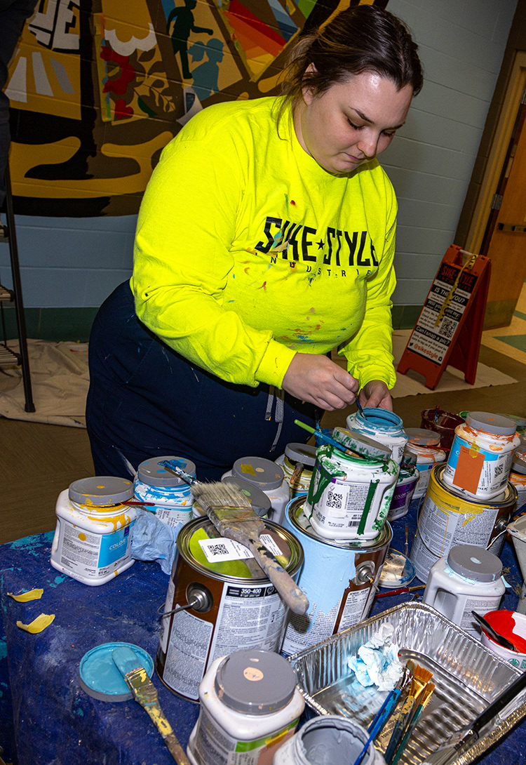 Shout out to everyone who came out to volunteer their time to help enliven the hallways of this school with dozens of small murals.