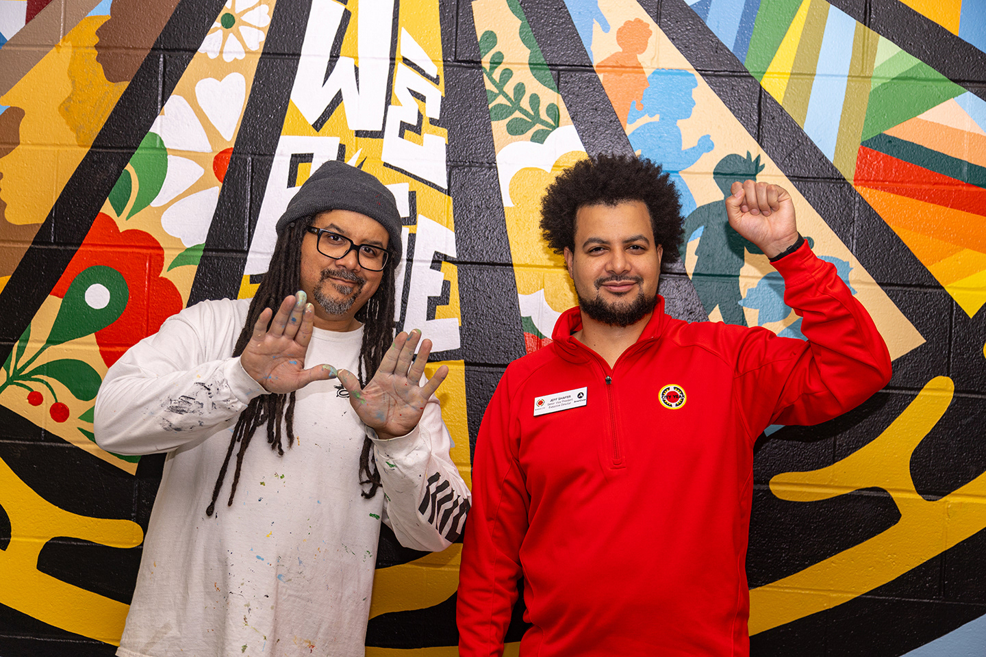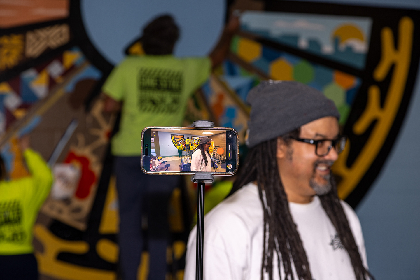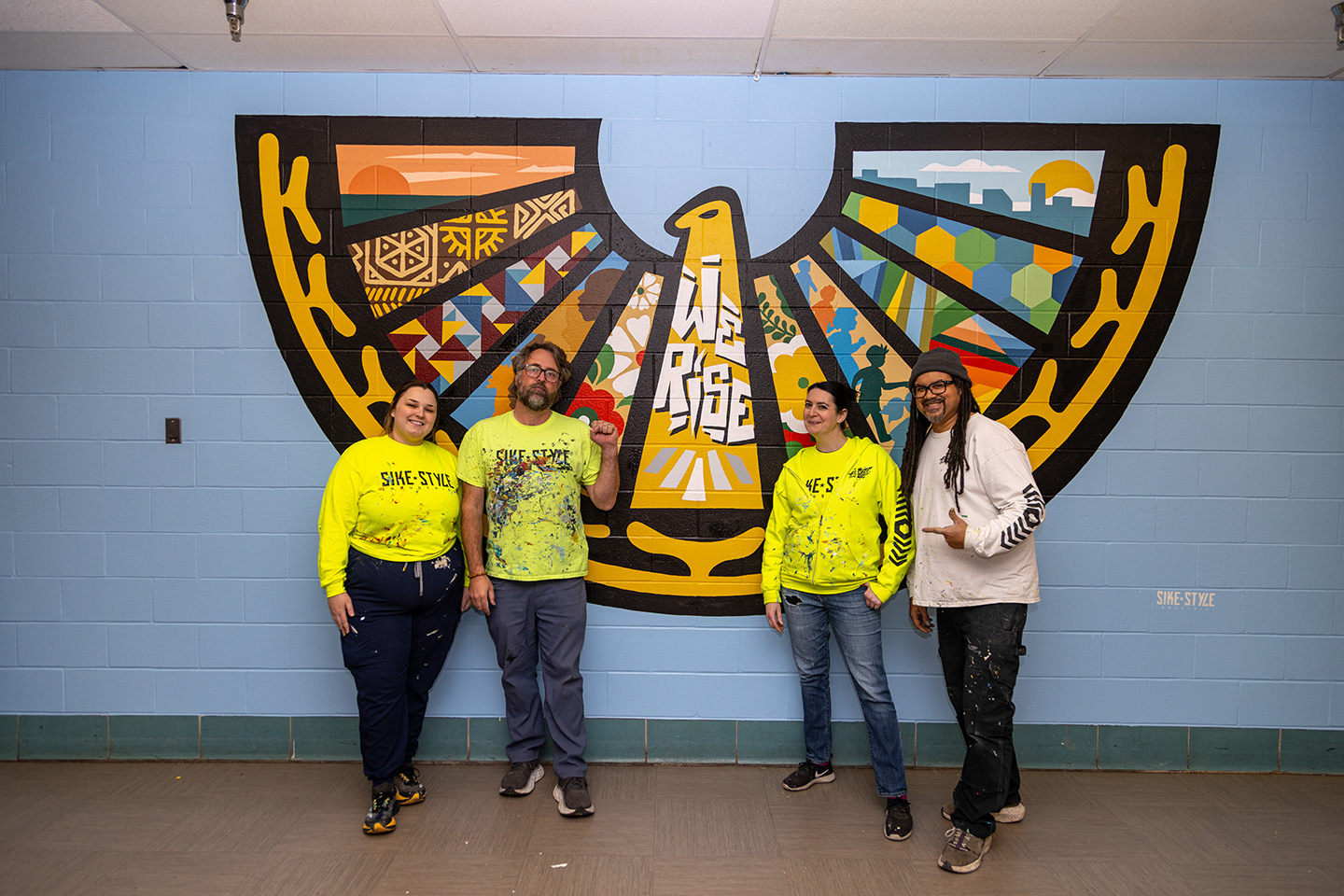The MLK Day of Service tradition continues in 2026 as we partner with City Year KC to create a mural for Primitivo Garcia Elementary School on KC's Westside. This year's inspiration was taken from the school's theme "We Rise". The school's phoenix logo was the perfect starting point to add some patterns, kids, and color to its abstract geometric shape.