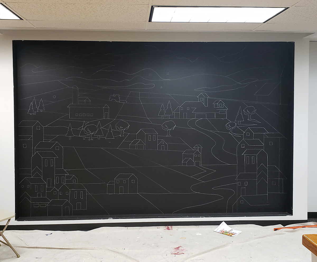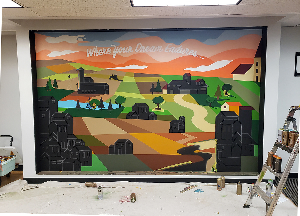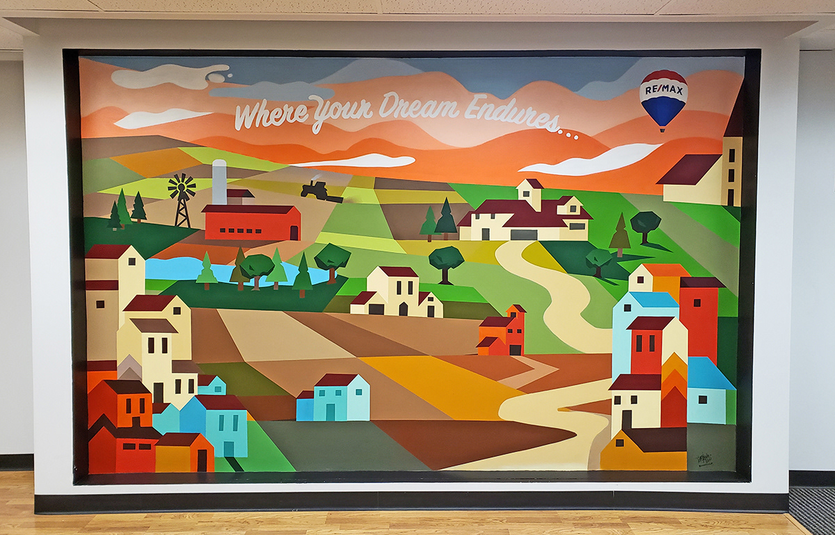 Custom designed and painted interior mural for the Gladstone MO, ReMax office