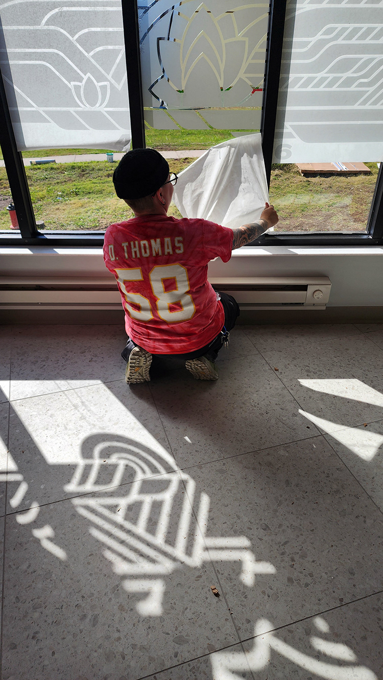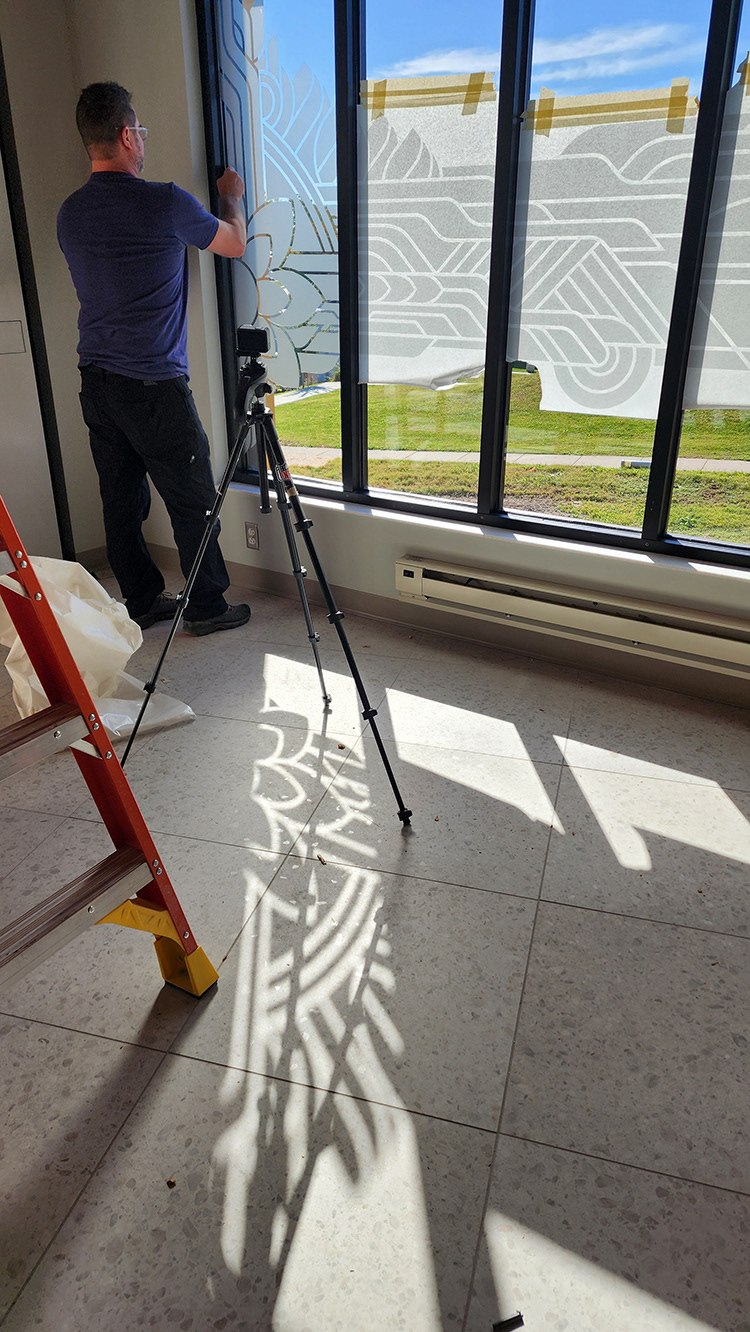 Frosted vinyl window installation