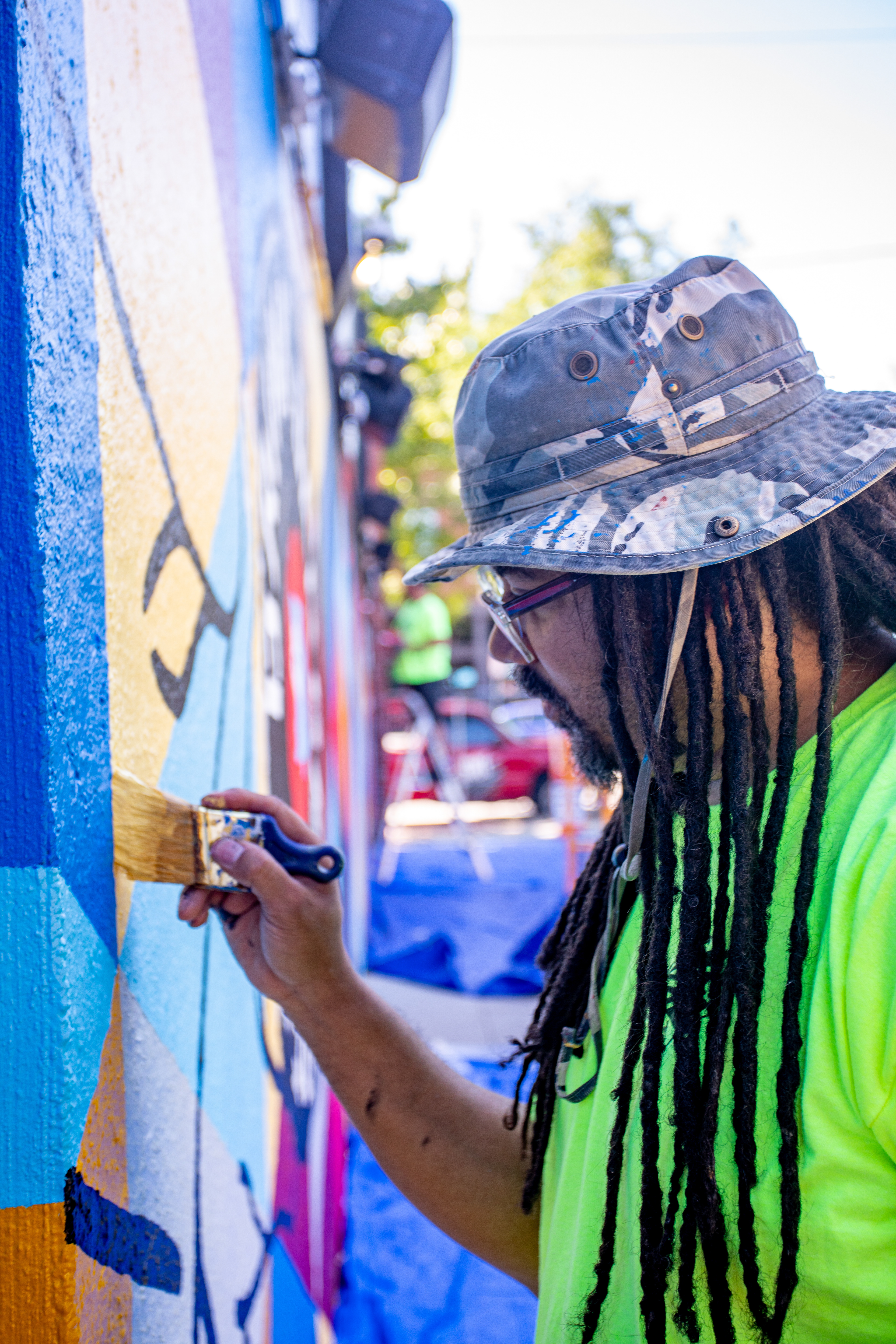Mural design and painting for the opening of Tin Roof, a live music venue in Westport Kansas City. This is the location of our previous Middle of the Map fest mural.