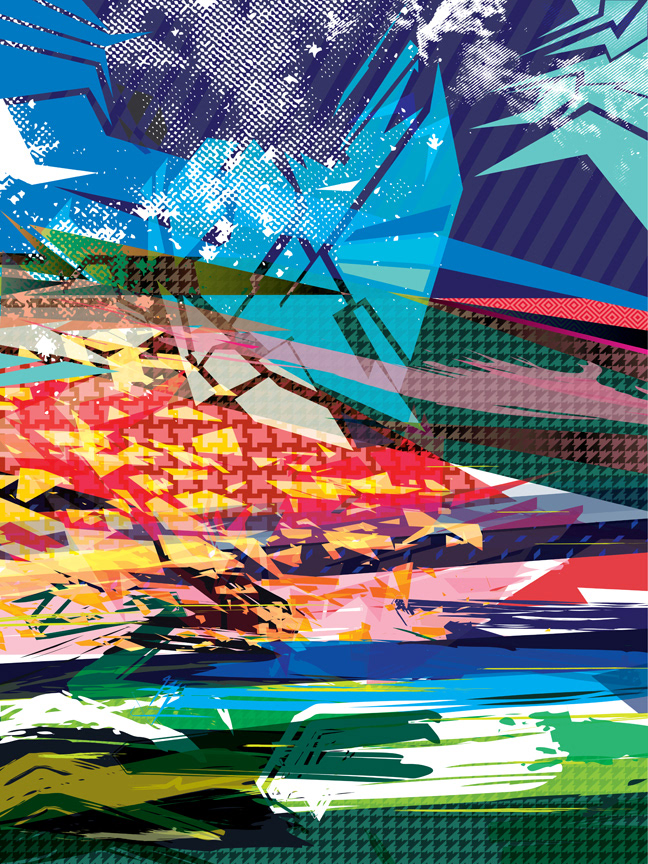 This series of vector illustrations were inspired by a road trip through southern Iowa. I was driving through the night taking a detour to avoid the flooded highways when I saw some fireflies wiz past the car creating green stripes of light. I came home and made these pieces afterward...don't ask me why...we can't always understand where inspiration comes from! haha