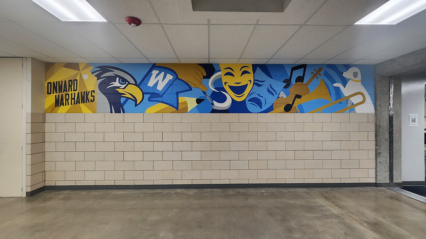 Murals in schools are some of our favorite jobs. These murals showcase school spirit, art, theater, sports, and we couldn't forget their beloved dog, Rosie. The kids and staff are gonna be Sike'd to see the updated walls and halls.