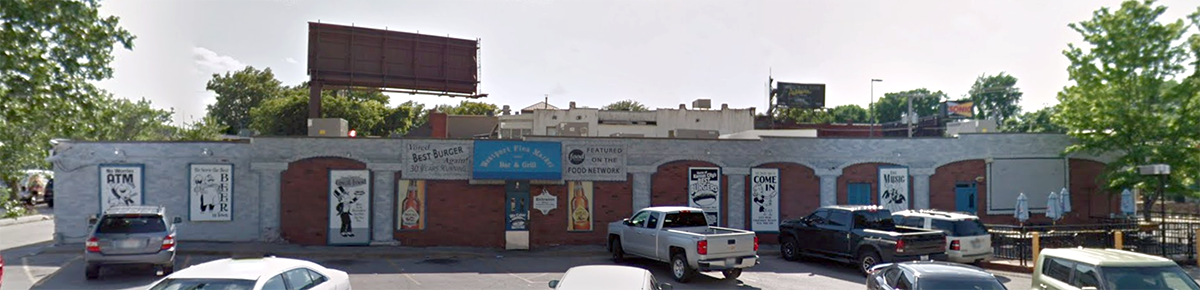 We added a burger billboard and updated the exterior of a classic Kansas City burger joint, The Westport Flea Market, as seen on The Food Network.before